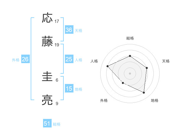 応藤 圭亮さんの総格は51画の3点!