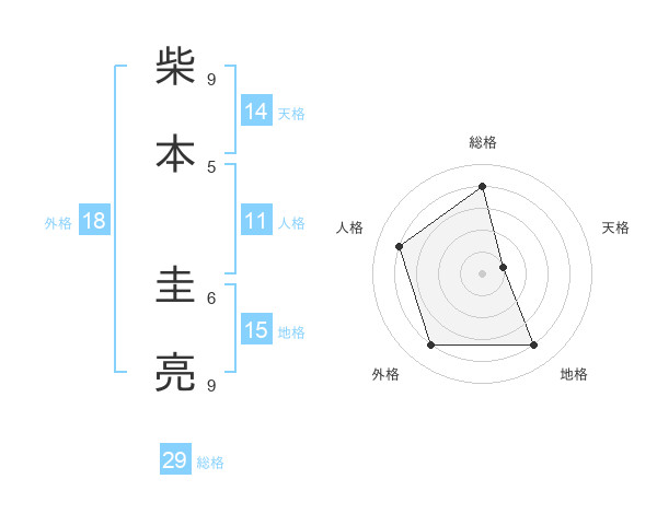 柴本 圭亮さんの総格は29画の4点!