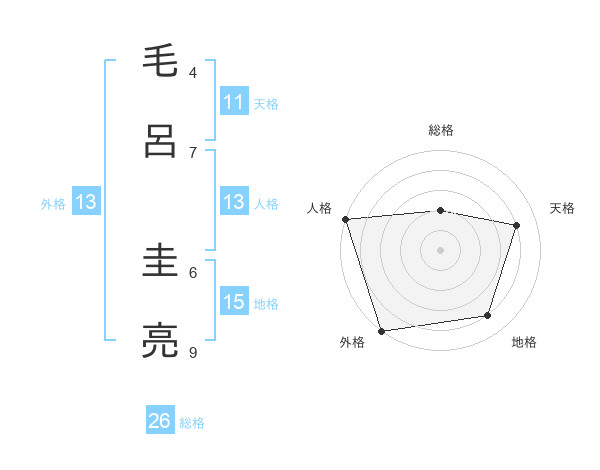 毛呂 圭亮さんの総格は26画の2点!