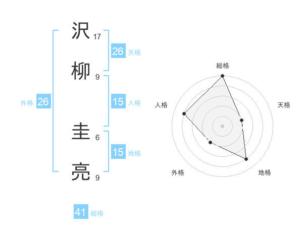沢柳 圭亮さんの外格は26画の2点!