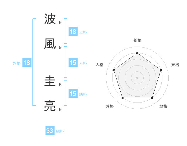 波風 圭亮さんの総格は33画の4点!