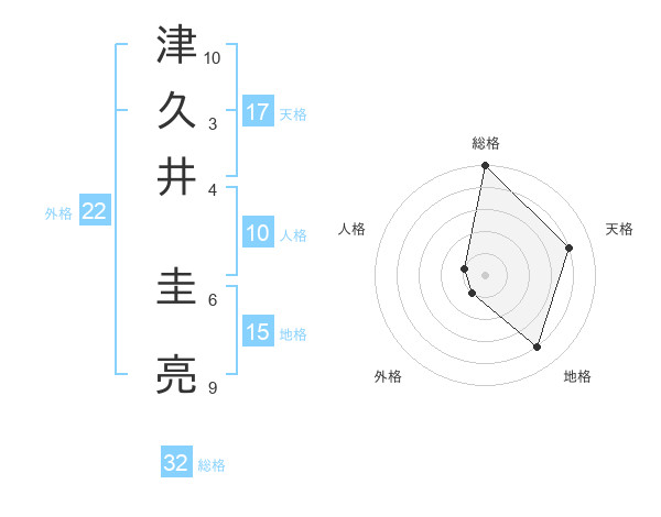 津久井 圭亮さんを姓名の画数から五運を鑑定