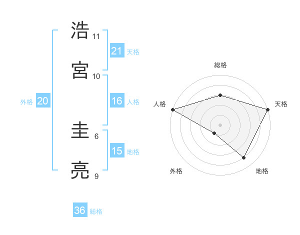 浩宮 圭亮さんの天格は21画の5点!