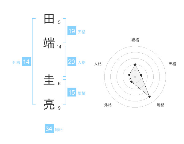 田端 圭亮さんの総格は34画の2点!