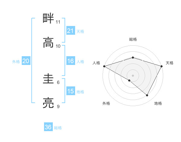 畔高 圭亮さんの天格は21画の5点!