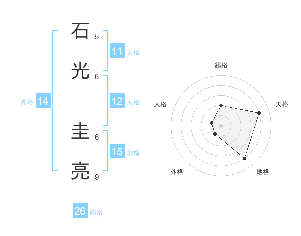 石光 圭亮さんを姓名の画数から五運を鑑定