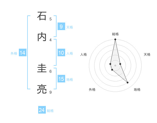 石内 圭亮さんの総格は24画の5点!