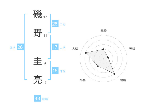 磯野 圭亮さんの総格は43画の2点!