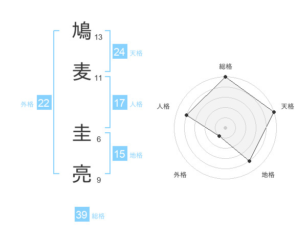 鳩麦 圭亮さんの総格は39画の5点!