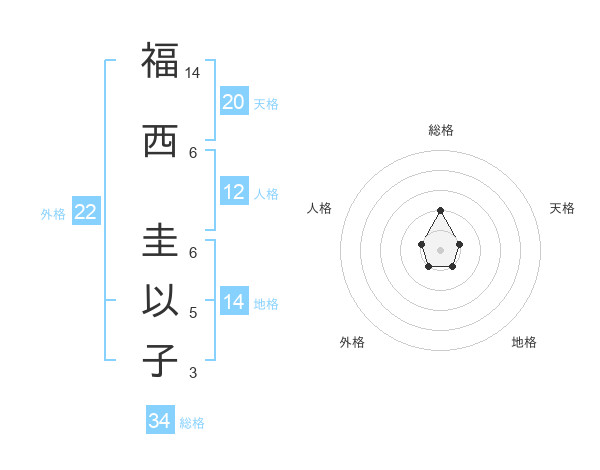 福西 圭以子さんの総格は34画の2点