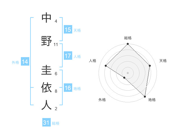 中野 圭依人さんを姓名の画数から五運を鑑定