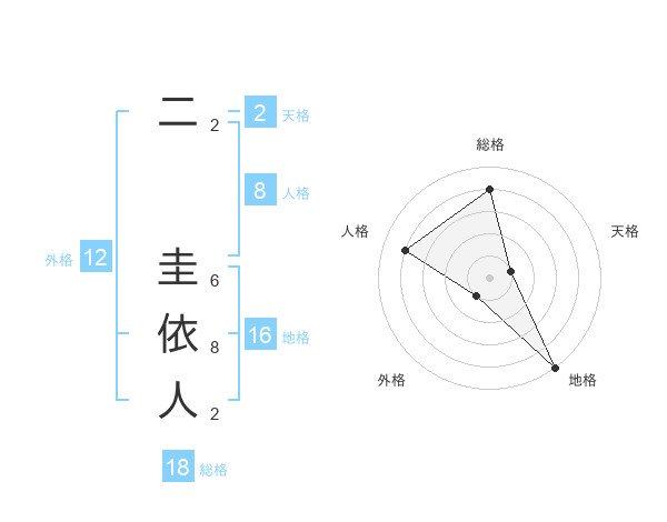 二 圭依人さんの総格は18画の4点
