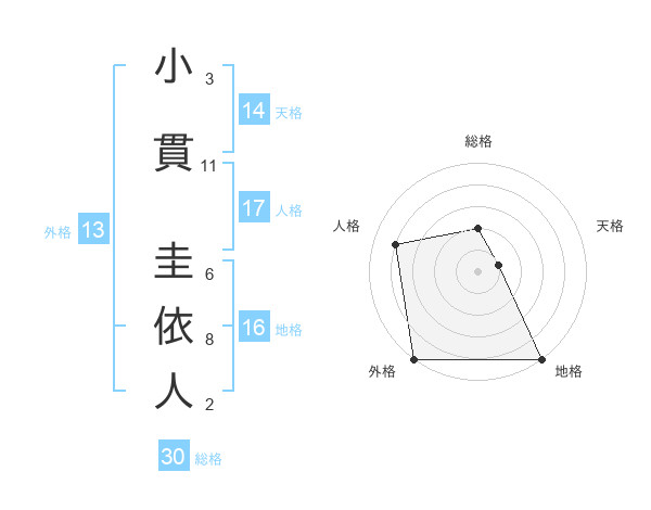 小貫 圭依人さんの総格は30画の2点