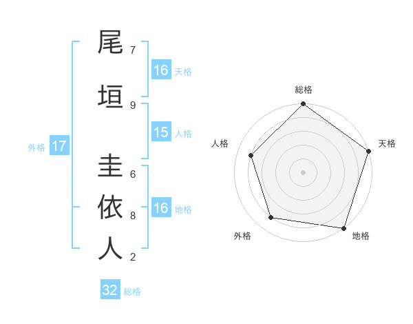 尾垣 圭依人さんを姓名の画数から五運を鑑定