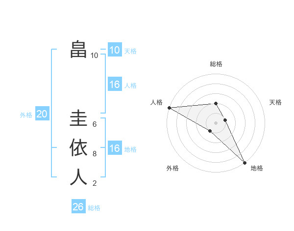 畠 圭依人さんの総格は26画の2点