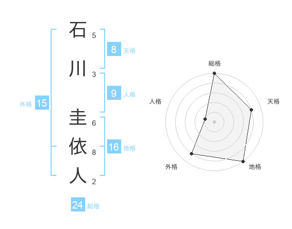 石川 圭依人さんの総格は24画の5点