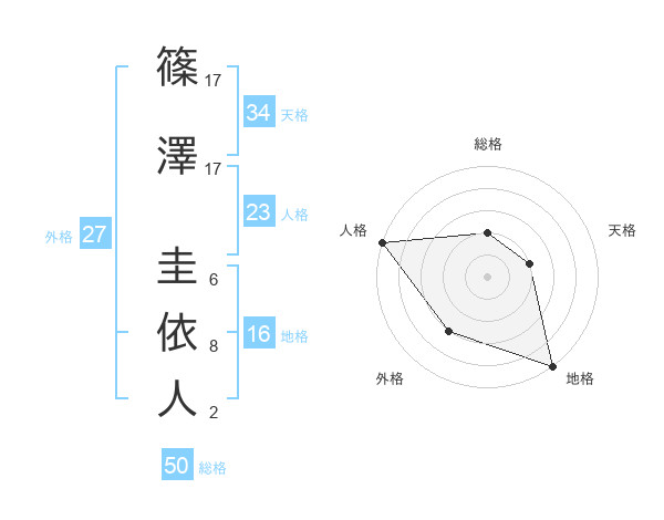篠澤 圭依人さんを姓名の画数から五運を鑑定