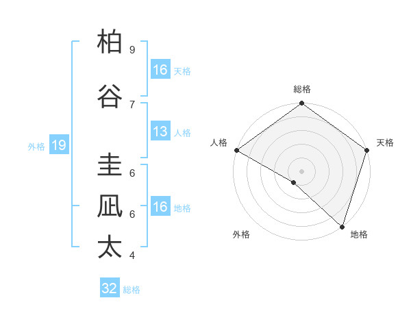 柏谷 圭凪太さんの総格は32画の5点!