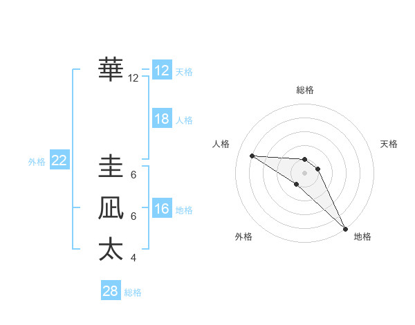 華 圭凪太さんの外格は22画の1点!