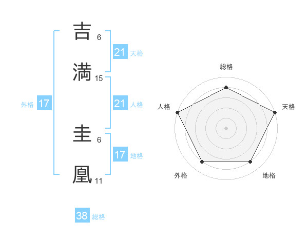 吉満 圭凰さんの天格は21画の5点!