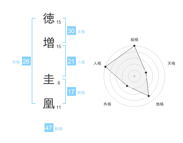 徳増 圭凰さんの総格は47画の5点!