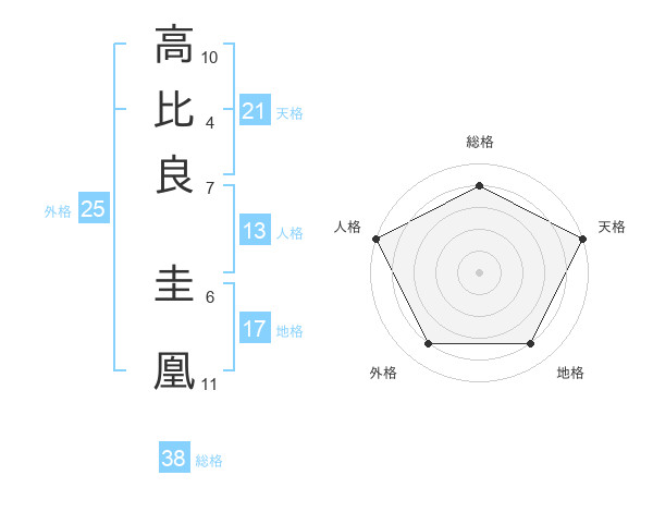 高比良 圭凰さんを姓名の画数から五運を鑑定
