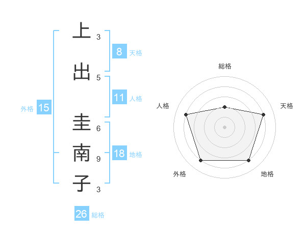 上出 圭南子さんを姓名の画数から五運を鑑定