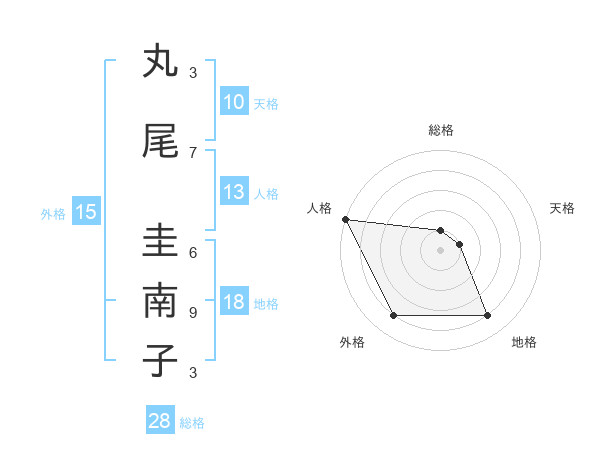丸尾 圭南子さんの外格は15画の4点!