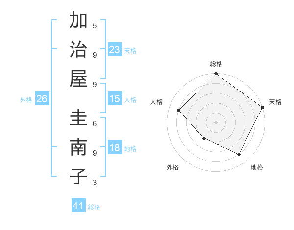加治屋 圭南子さんの天格は23画の5点!