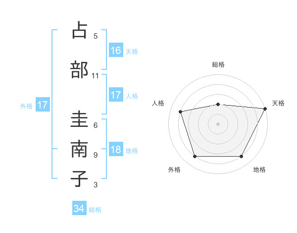 占部 圭南子さんの外格は17画の4点!