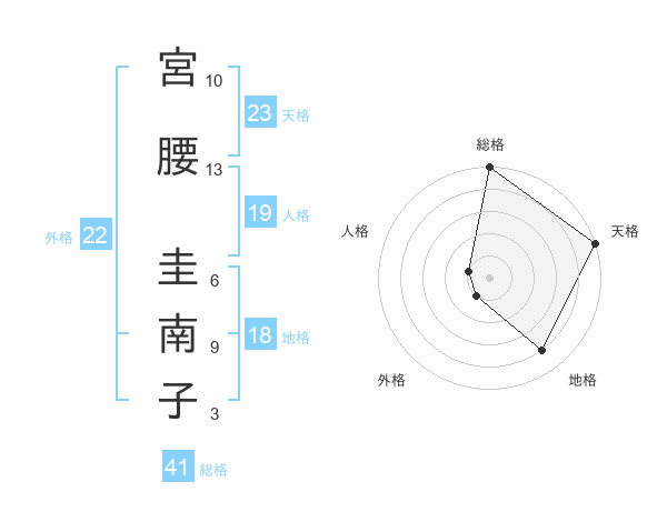 宮腰 圭南子さんを姓名の画数から五運を鑑定