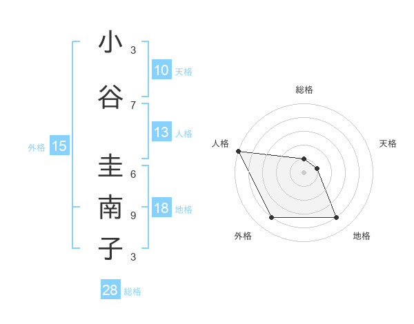 小谷 圭南子さんの総格は28画の1点!