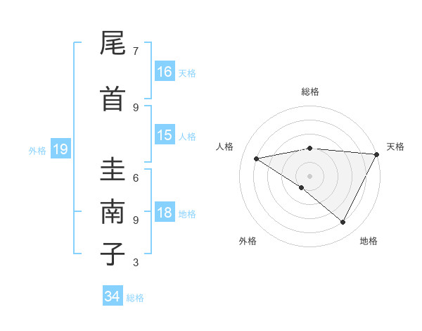尾首 圭南子さんを姓名の画数から五運を鑑定