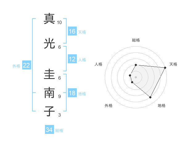 真光 圭南子さんを姓名の画数から五運を鑑定