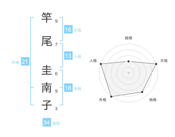 竿尾 圭南子さんを姓名の画数から五運を鑑定