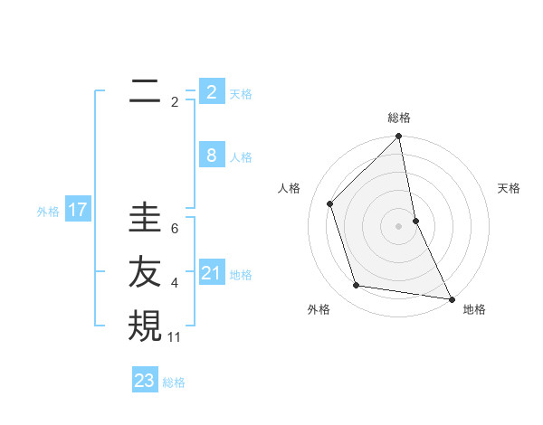 二 圭友規さんの外格は17画の4点!