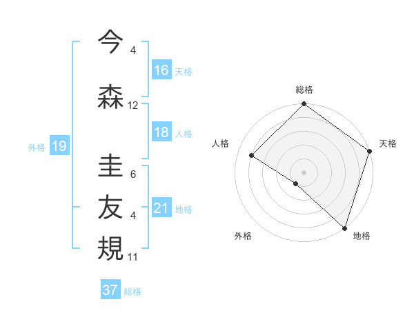 今森 圭友規さんの総格は37画の5点!