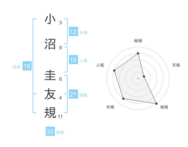 小沼 圭友規さんを姓名の画数から五運を鑑定