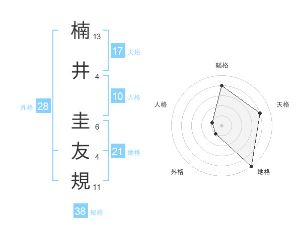 楠井 圭友規さんを姓名の画数から五運を鑑定