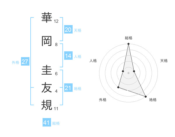 華岡 圭友規さんの総格は41画の5点!