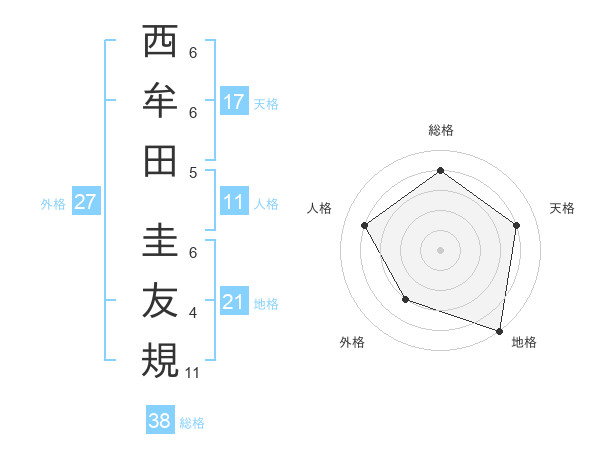 西牟田 圭友規さんを姓名の画数から五運を鑑定