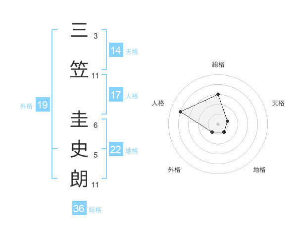 三笠 圭史朗さんの天格は14画の1点!
