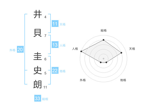 井貝 圭史朗さんを姓名の画数から五運を鑑定