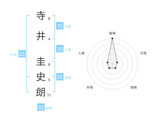 寺井 圭史朗さんの総格は32画の5点!