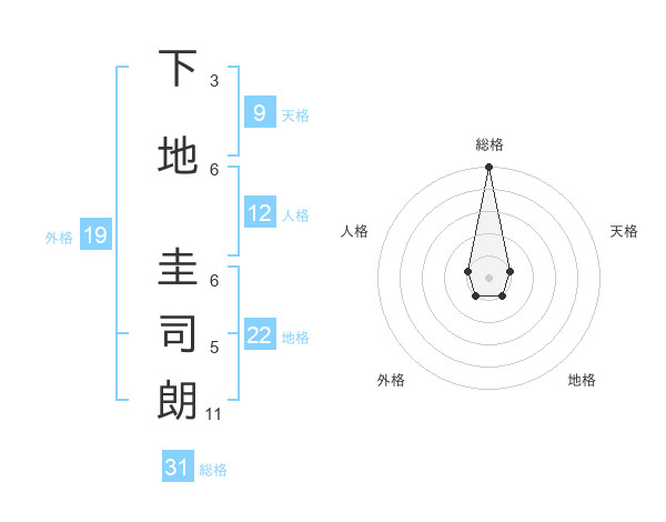下地 圭司朗さんを姓名の画数から五運を鑑定