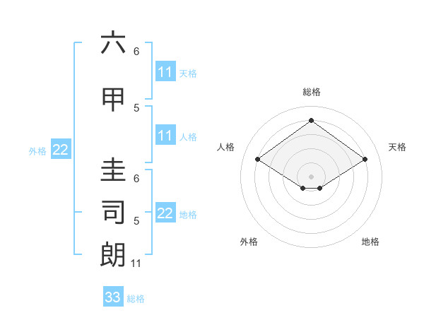 六甲 圭司朗さんを姓名の画数から五運を鑑定