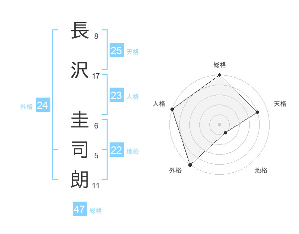 長沢 圭司朗さんの総格は47画の5点!