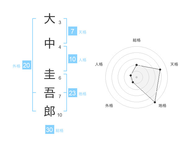 大中 圭吾郎さんの天格は7画の4点!