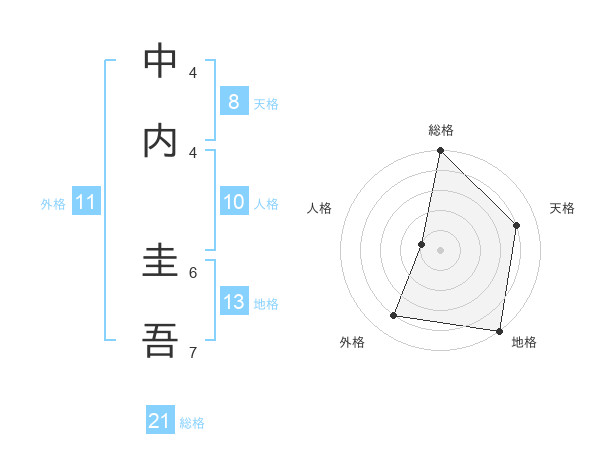 中内 圭吾さんを姓名の画数から五運を鑑定