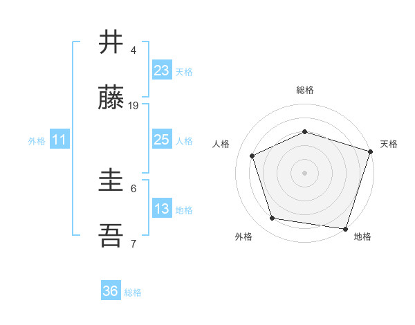 井藤 圭吾さんを姓名の画数から五運を鑑定